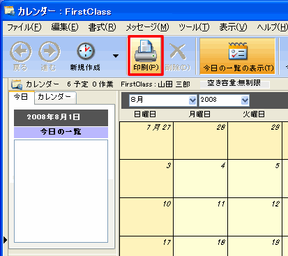カレンダーをすぐに印刷するには、ツールバーボタンの[印刷]をクリックしてください。現在表示されているアクティブなペインが印刷されます。