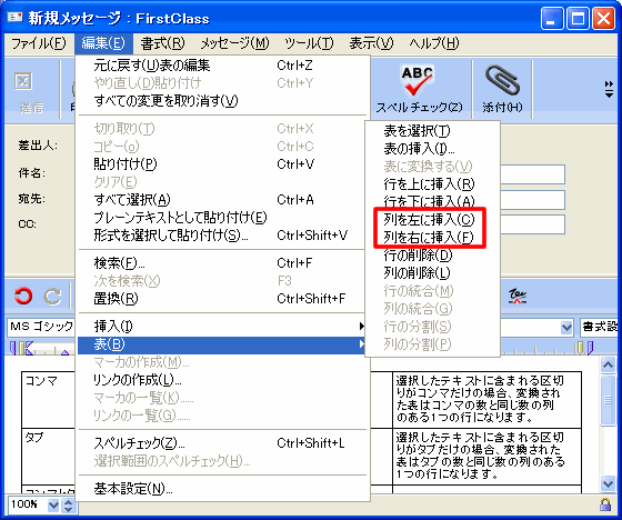 複数の列を挿入する場合は、追加する列と同じ数の列を選択してください。新しい列が選択した列の右または左に挿入されます。