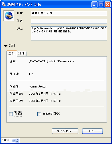 名前の変更や件名の追加などを行うには、リンクのプロパティを開き、