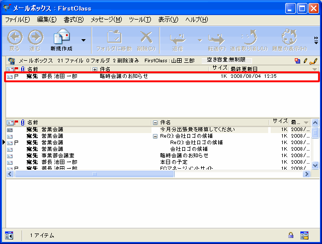 標準メッセージフォーム([メッセージ]>[新規メッセージ]を選択したときに表示されるフォーム)には2種類あり、そのどちらかを使用できます。1つは、FirstClassを以前からお使いのユーザならよくご存知のフォームです。もう1つは、Outlook Expressを使用したことのあるユーザには見慣れたフォームです。