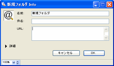ブックマークを作成するオブジェクトを選択しなかった場合は、[プロパティ]フォームの[URL]フィールドにオブジェクトの絶対パスを入力してください。
