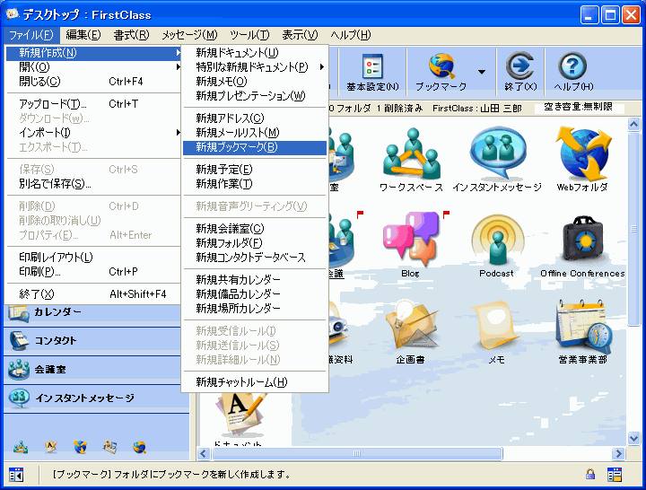 1       [ファイル]>[新規作成]>[新規ブックマーク]を選択します。