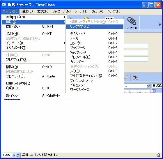 •     リンクアイコンを選択するか、リンクテキストまたは画像をクリックし、[ファイル]>[開く]>[リンクを開く]を選択する