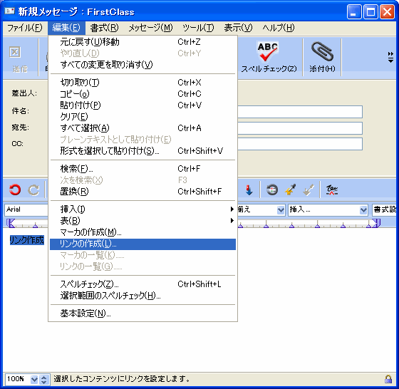 選択したテキストからリンクを作成するには、以下の操作を行ってください。