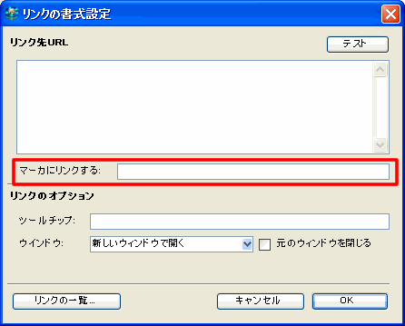 マーカにリンクするには、[マーカにリンクする]をクリックしてください。マーカ名が[リンク先URL]に表示されます。