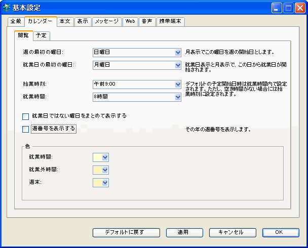 • 週番号を表示する(月表示と週表示)