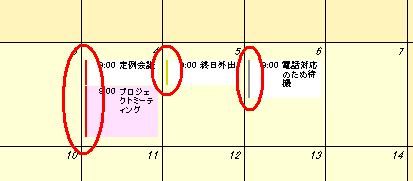 カレンダーの予定の左側には、以下の色が付いた垂直分割バーが表示されます。