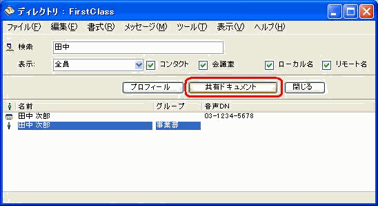 他のユーザの[マイ共有ドキュメント]フォルダを表示するには、ディレクトリでそのユーザを選択し、[共有ドキュメント]をクリックしてください。