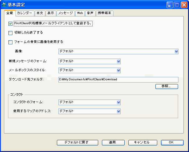 基本設定をFirstClassのデフォルトにリセットするには、[デフォルトに戻す]をクリックしてください。