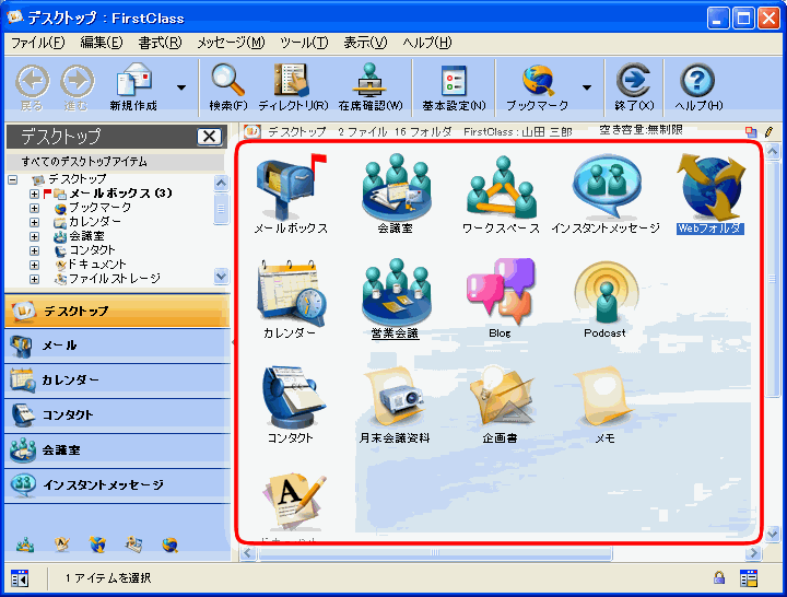 メインペインには、デスクトップ、開いたコンテナ、またはメッセージなど開いたオブジェクトの内容が表示されます。メインペインは、単一のペインの場合と、分割バーで区切られた複数のペインになる場 合とがあります。