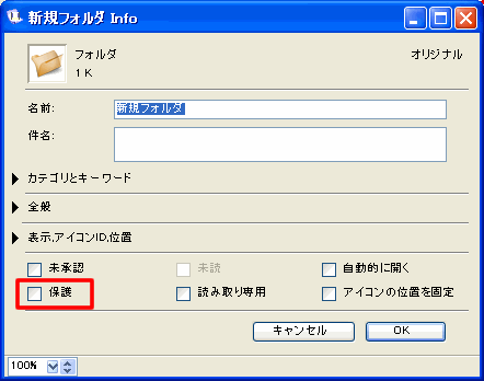 • アイコンが保護されているか(保護されていても、そのアイコンを異なるコンテナ