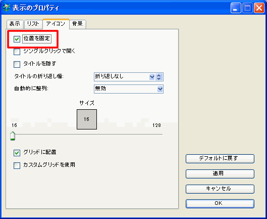 アイコン位置の固定