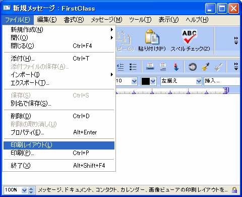 1       [ファイル]>[印刷レイアウト]を選択します。