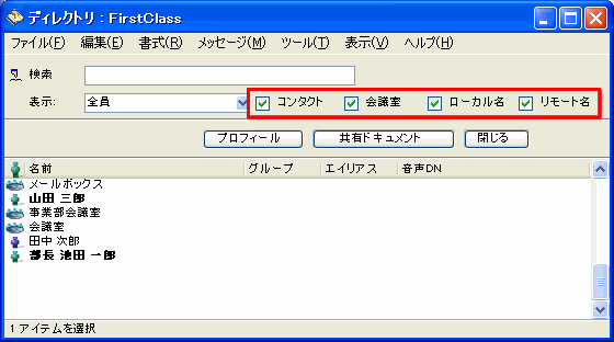 [ディレクトリ]ウィンドウには、以下の4つの種類に対応するチェックボックスがあります。