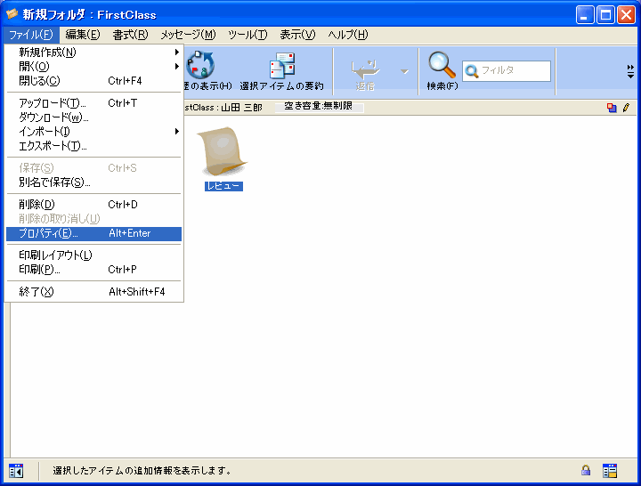 2       [ファイル]>[プロパティ](WindowsおよびLinux)または[情報を見る](Mac)を選択します。
