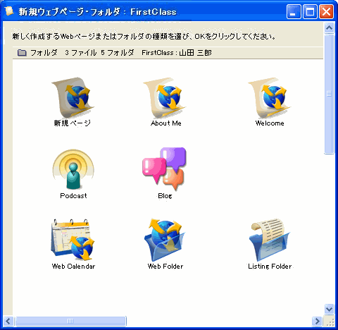 4 基本的なWebページで使用するテンプレートを1つ選択します。