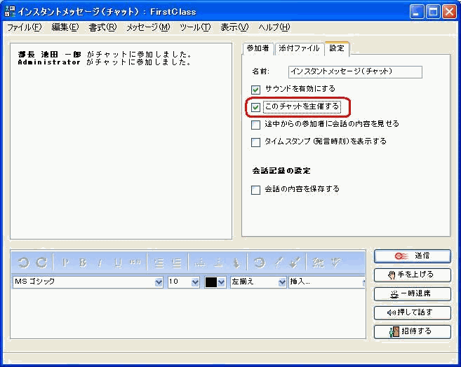 インスタントメッセージに参加している他のユーザの発言を管理する必要がある場合には、インスタントメッセージを主催できます。