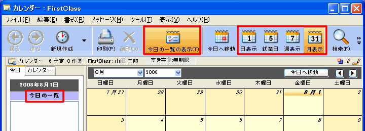 カレンダーの左側にペインを表示して、追加の情報を表示させることができます。表示させるには、[表示]>[今日の一覧を表示]を選択してください。