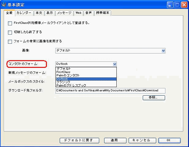 FirstClassには、コンタクトを追加および保存するためのフォームが何種類か用意されています。例えば、OutlookまたはPalmの[コンタクト]フォームを使い慣れている場合は、同じようなレイアウトのFirstClassフォームを利用できます。