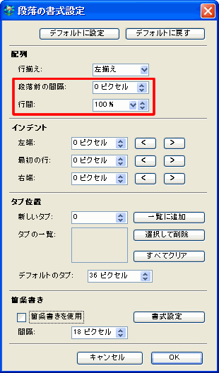 段落内の行と行の間に設ける空白や、段落の上に設ける空白の高さを変更できます。