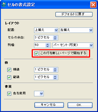 3       [この行を新しいページで開始する]を選択します。