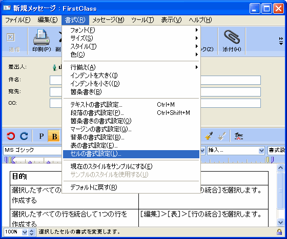 2       [書式]>[表の書式設定]を選択します。