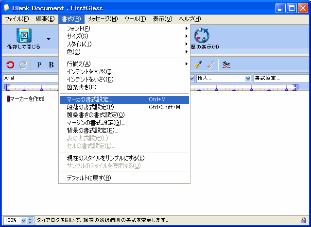 1       マーカを選択し、[書式]>[マーカの書式設定]を選択します。