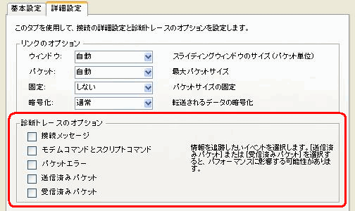 6       [診断トレースのオプション]で、トレース情報を取得するイベントを選択します。