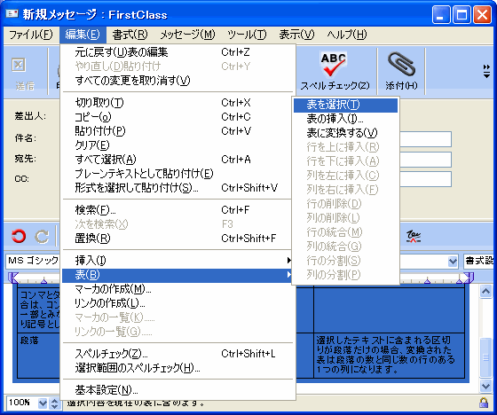 表全体を選択するには、[編集]>[表]>[表を選択]を選択してください。