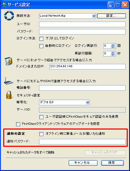 5 この設定ファイルにパスワードを保存していない場合は、[通知パスワード]にこの接続のパスワードを入力してください。