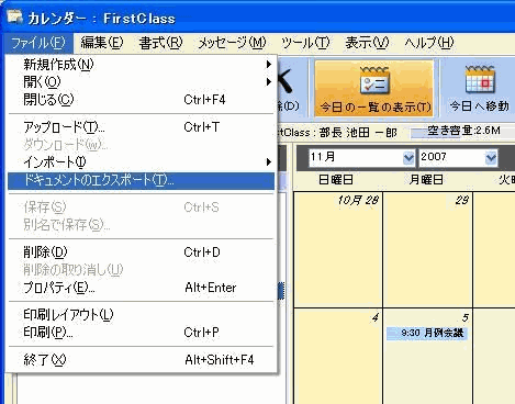 FirstClassカレンダーの予定と作業をエクスポートするには、以下の作業を行ってください。