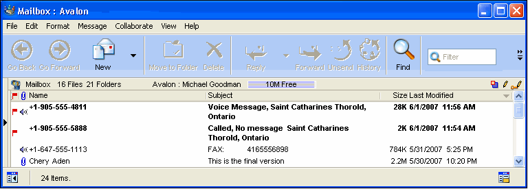 FirstClass Unified Communications enables you to access your phone and fax messages along with your email messages from your FirstClass client or from a web browser, just as you have always accessed your email. Phone messages are stored on the FirstClass server in standard .wav format, which is playable on virtually any platform.