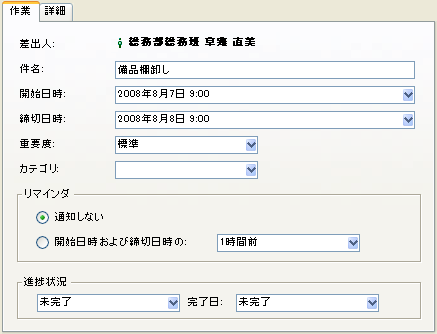 (会議など日時が決められている)予定と(レポート提出など完了する必要のある)作業のスケジュールをオンラインで設定します。個人用のカレンダーがあるほか、共有カレンダーを利用できる場合もあります。 |