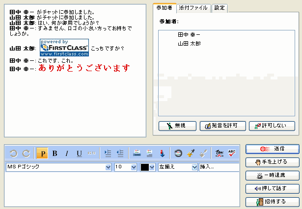 接続中の他のユーザと、リアルタイムでオンラインチャットを行います。 |