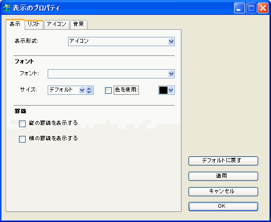 [デフォルトに戻す]をクリックすると、表示されているタブの設定だけでなく、表示のプロパティがすべてリセットされますのでご注意ください。