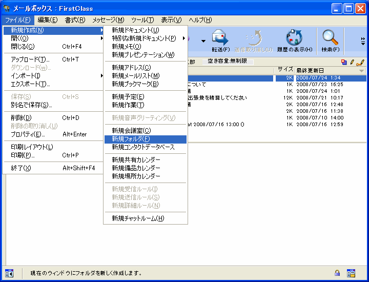 2 [ファイル]>[新規作成]>[新規フォルダ]を選択します。