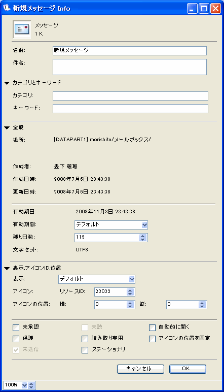 このオブジェクトを個人用のステーショナリに変換しま す。変換したステーショナリは、新規メッセージのテンプレートとして利用できます。