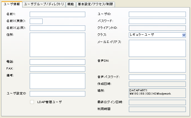 ユーザ名は、[名前1][名前2][名前3]の順で表示されます。例えば、[名前1]に姓、[名前3]に名を入力するパターンや、[名前1]に社員番号や学籍番号、[名前3]に姓名を入力するパターンなどがあります。 |