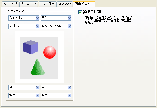 このタブを使用して、画像ビューアに表示された画像の印刷方法を設定します。