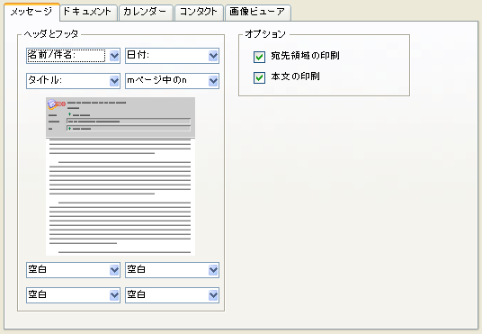これらのタブを使用して、印刷するメッセージまたはドキュメントに関する設定を行います。