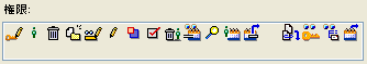[権限]欄のアイコンは、個別の権限を表しています。これらのアイコンはトグルスイッチになっており、クリックするたびに有効、無効が切り替わります。各アイコンの意味を参照するには、マウスカーソルをそのアイコンに乗せてツールチップを表示させてください。