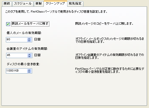 FirstClassパーソナル9.0以前にのみ適用されます。FirstClassパーソナルで開いたメッセージのコピーをサーバに残します。 |