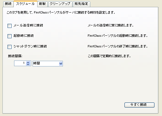 このタブを使用して、FirstClassパーソナルをサーバに接続するスケジュールを設定します。