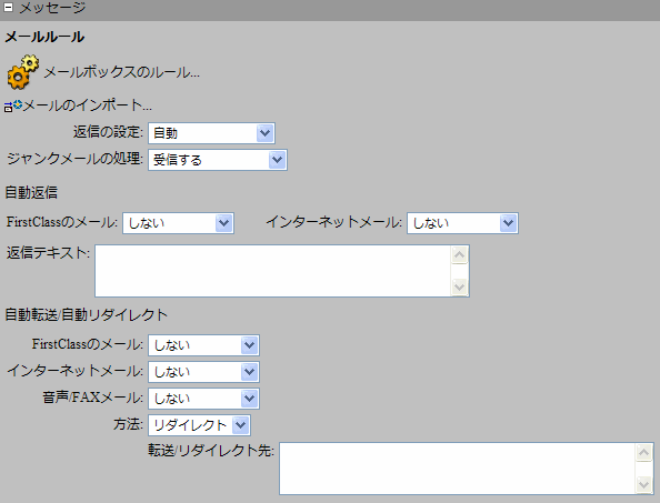 該当する種類の全メールに対して自動転送または自動リダイレクトを行います。 |