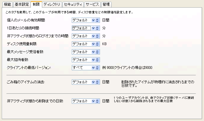 このユーザグループのデフォルトのタイムゾーンです。このグループに所属するユーザが、サーバの設置場所とはタイムゾーンの異なる場所にいる場合に役立ちます。 |