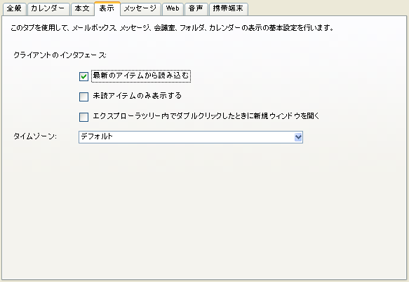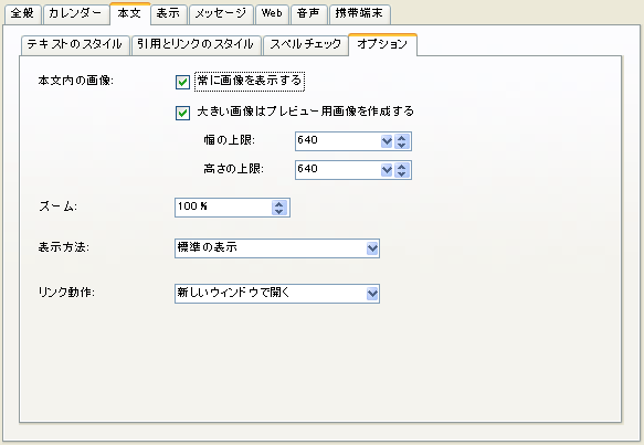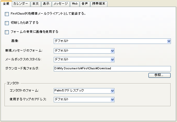 このタブを使用して、全体表示、メールクライアント、およびダウンロードのデフォルトを設定します。