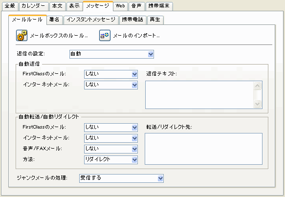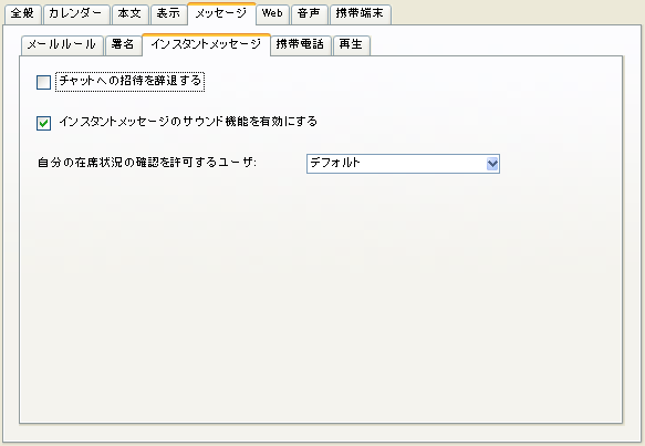 このタブを使用して、インスタントメッセージのデフォルト設定を行います。