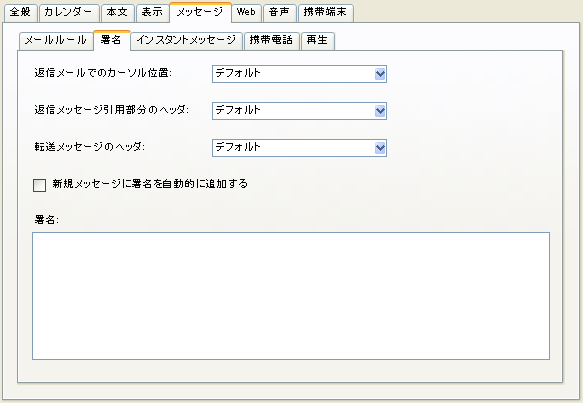 作成するすべてのメッセージに署名を自動的に追加します。 |