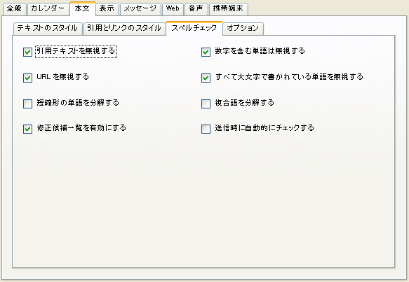 このタブを使用して、FirstClassでスペルチェックを行う方法を設定します。