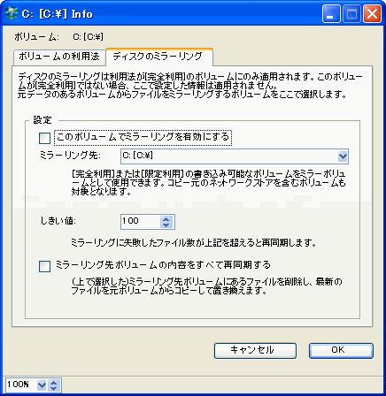 [ディスクのミラーリング]タブ